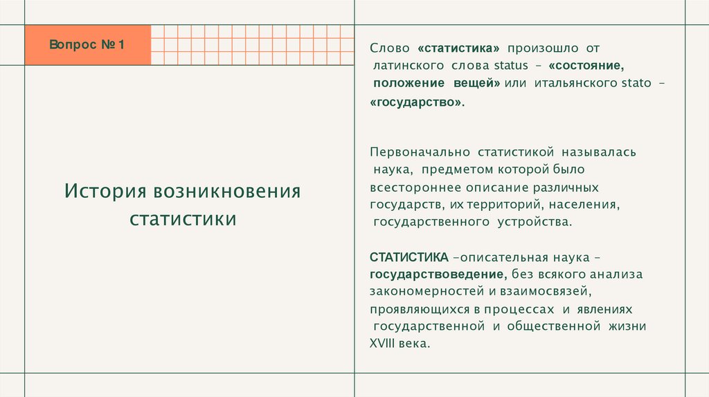 Вопрос № 1Слово «статистика» произошло от