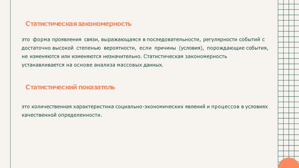 Статистическаязакономерностьэто форма проявления связи, выражающаяся в последовательности, регулярности событий с