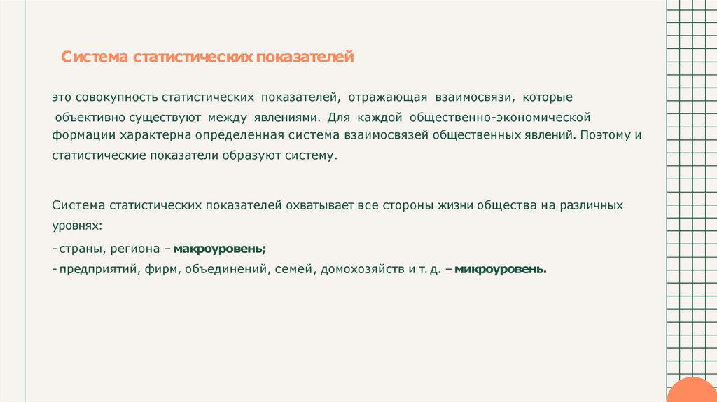 статистические показатели образуют систему.
