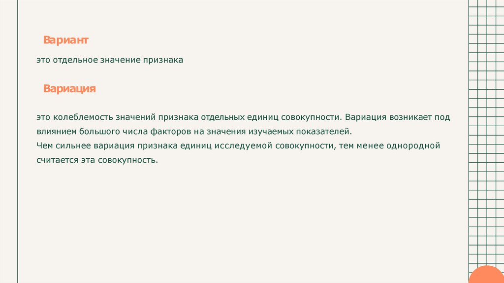 это колеблемость значений признака отдельных единиц совокупности. Вариация возникает под