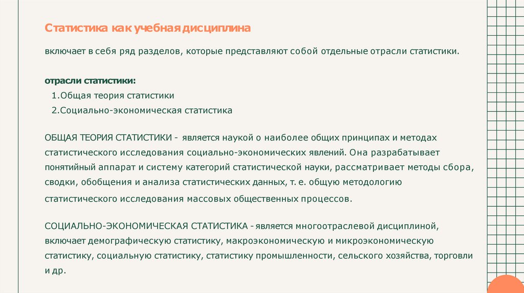 СОЦИАЛЬНО-ЭКОНОМИЧЕСКАЯ СТАТИСТИКА - является многоотраслевой дисциплиной,