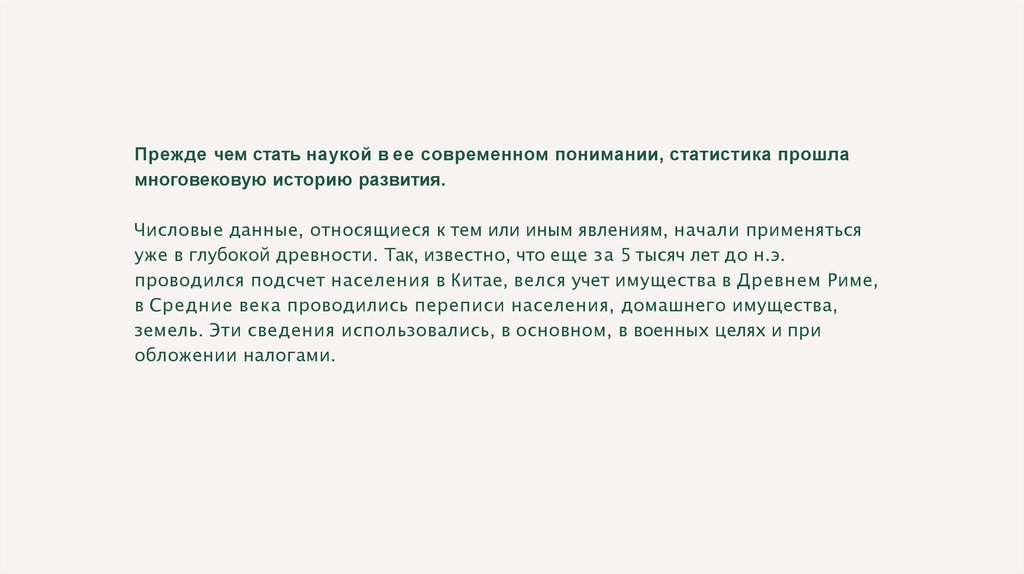 Прежде чем стать наукой в ее современном понимании, статистика прошламноговековую историю развития.