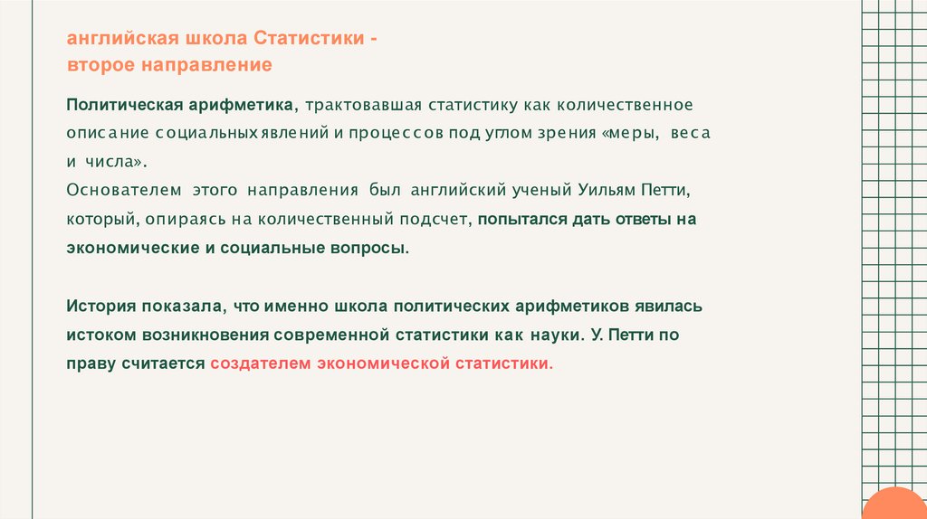 истоком возникновения современной статистики как науки. У. Петти по
