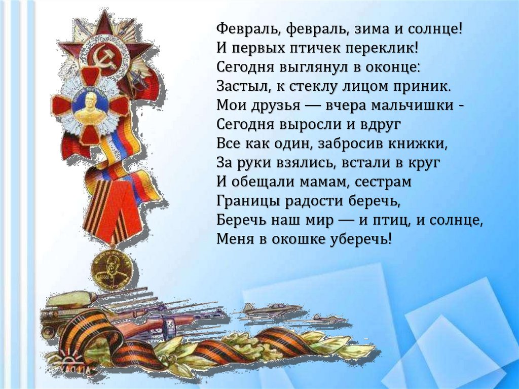Это празднует февраль армии рожденье.Ночью вьюга бушевала, и метелица мела,