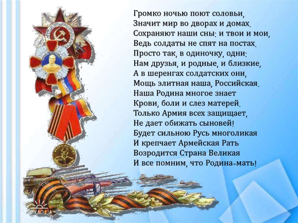 Громко ночью поют соловьи,Значит мир во дворах и домах.