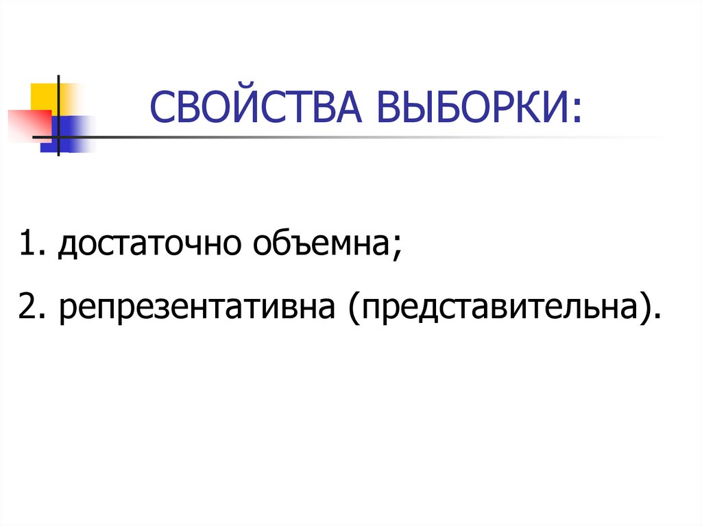 1. достаточно объемна;2. репрезентативна (представительна).