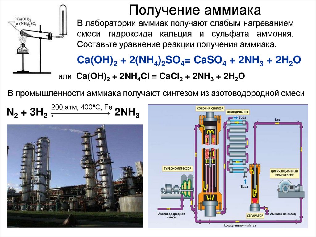 В промышленности аммиака получают синтезом из азотоводородной смеси