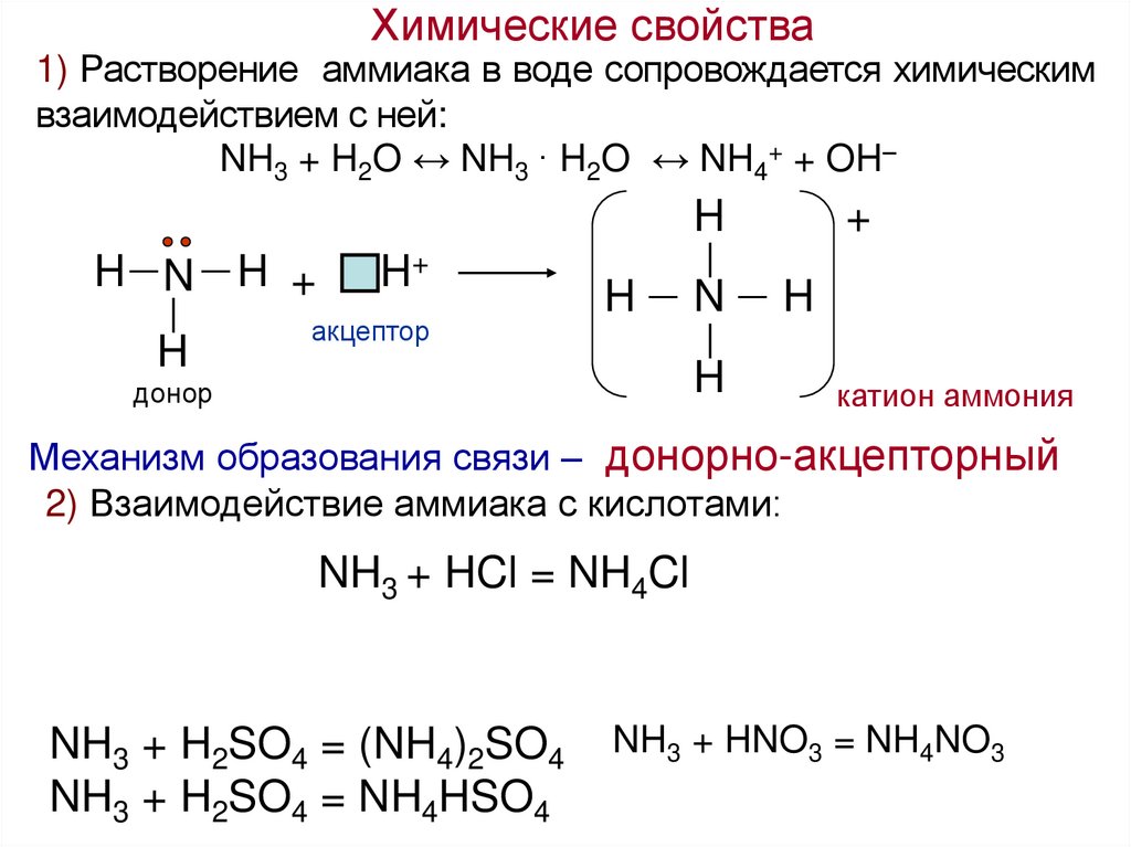Химические свойства1) Растворение аммиака в воде сопровождается химическим