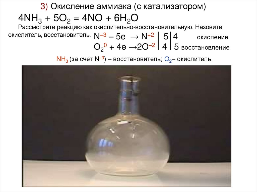 NH3 (за счет N–3) – восстановитель; О2– окислитель.