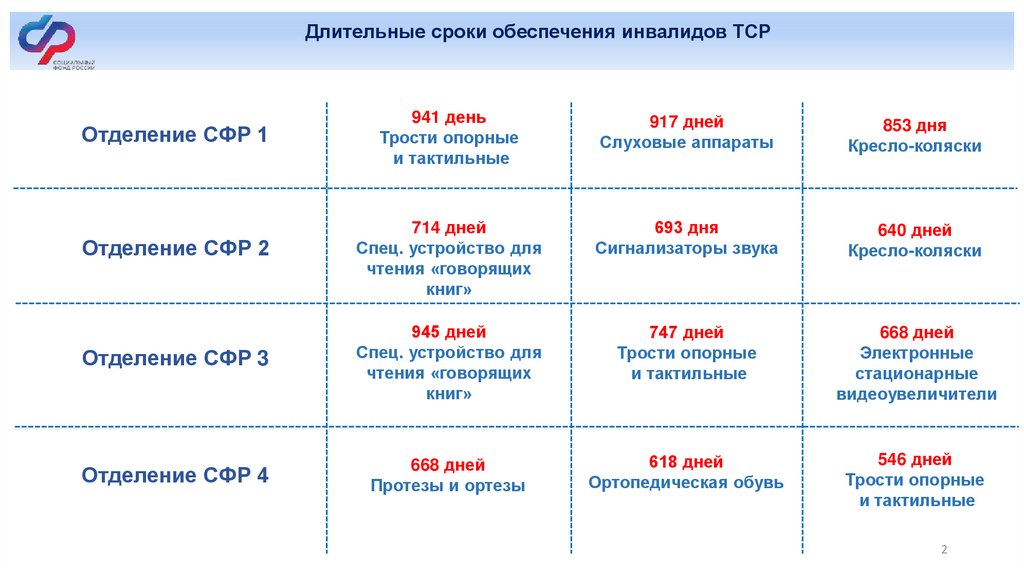 Длительные сроки обеспечения инвалидов ТСР941 день
