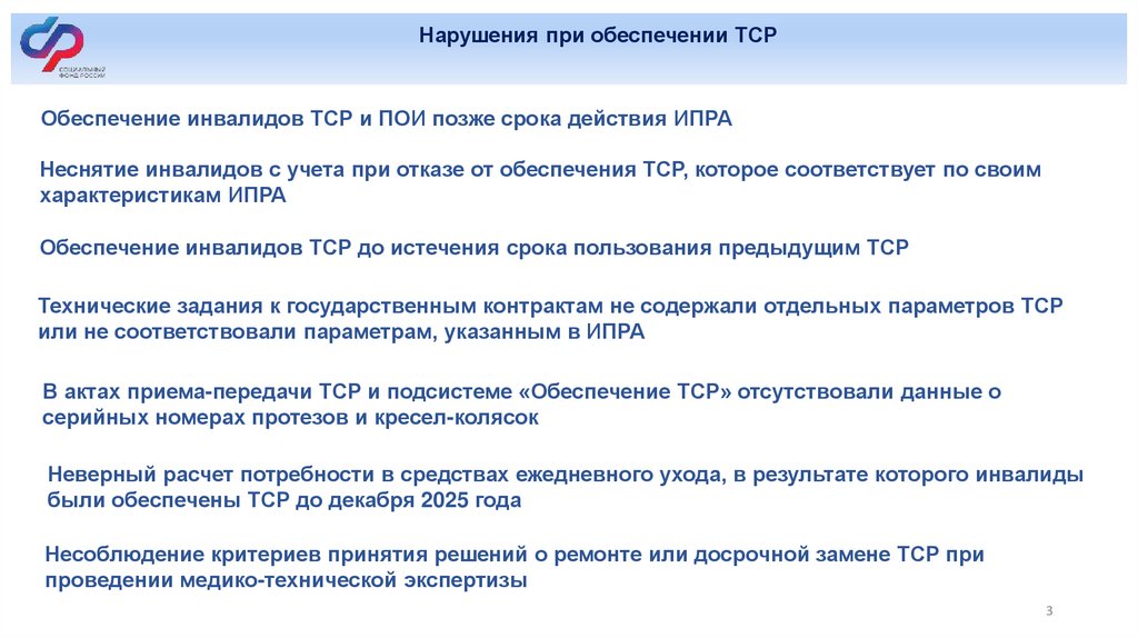 Нарушения при обеспечении ТСРОбеспечение инвалидов ТСР и ПОИ позже срока действия ИПРА