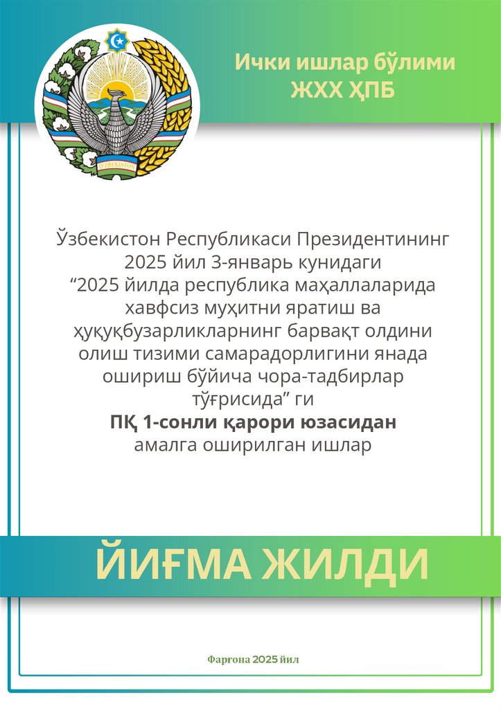 ПҚ №1“2025 йилда республика маҳаллаларида хавфсиз муҳитни
