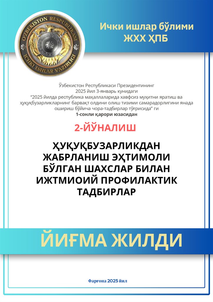ҳуқуқбузарликларнинг барвақт олдини олиш тизими самарадорлигини янада