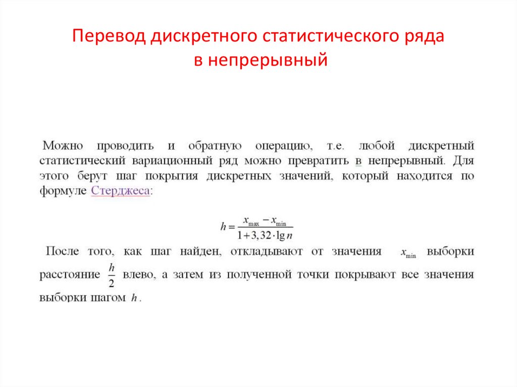 Алгоритм перевода дискретного статистического рядав непрерывный