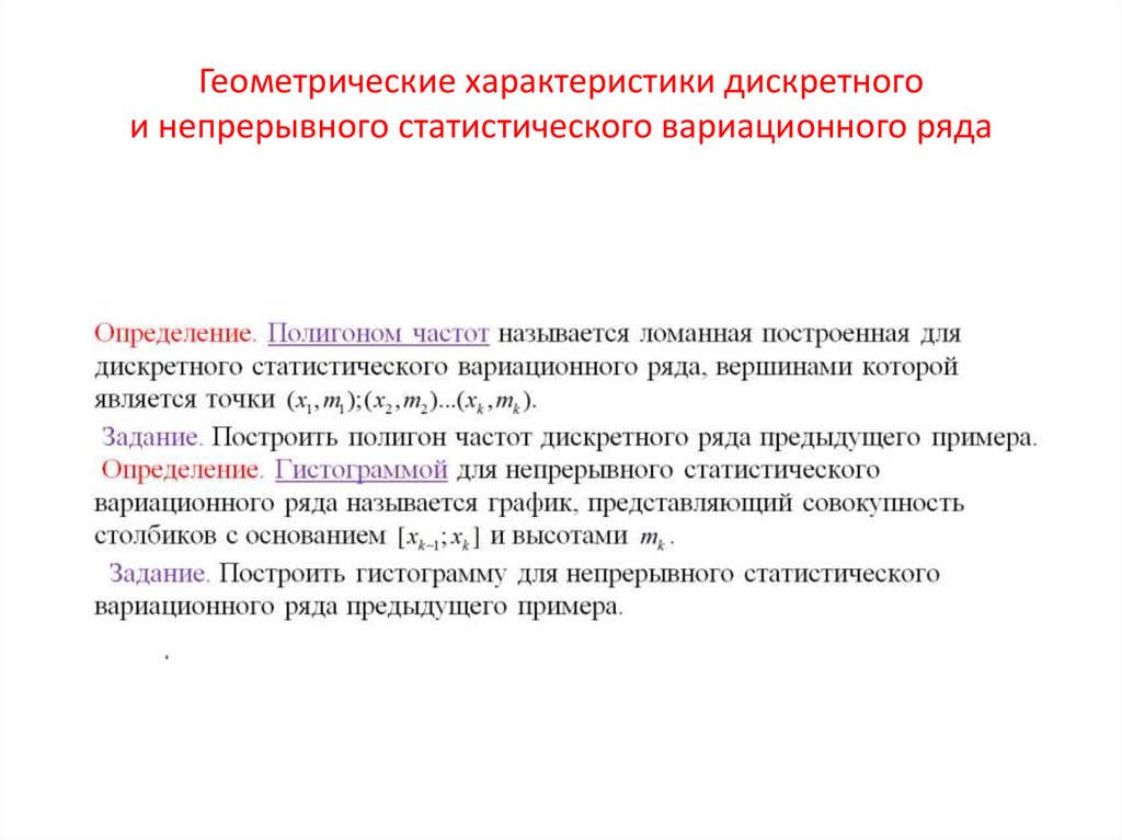 Геометрические характеристики дискретногои непрерывного статистического вариационного ряда