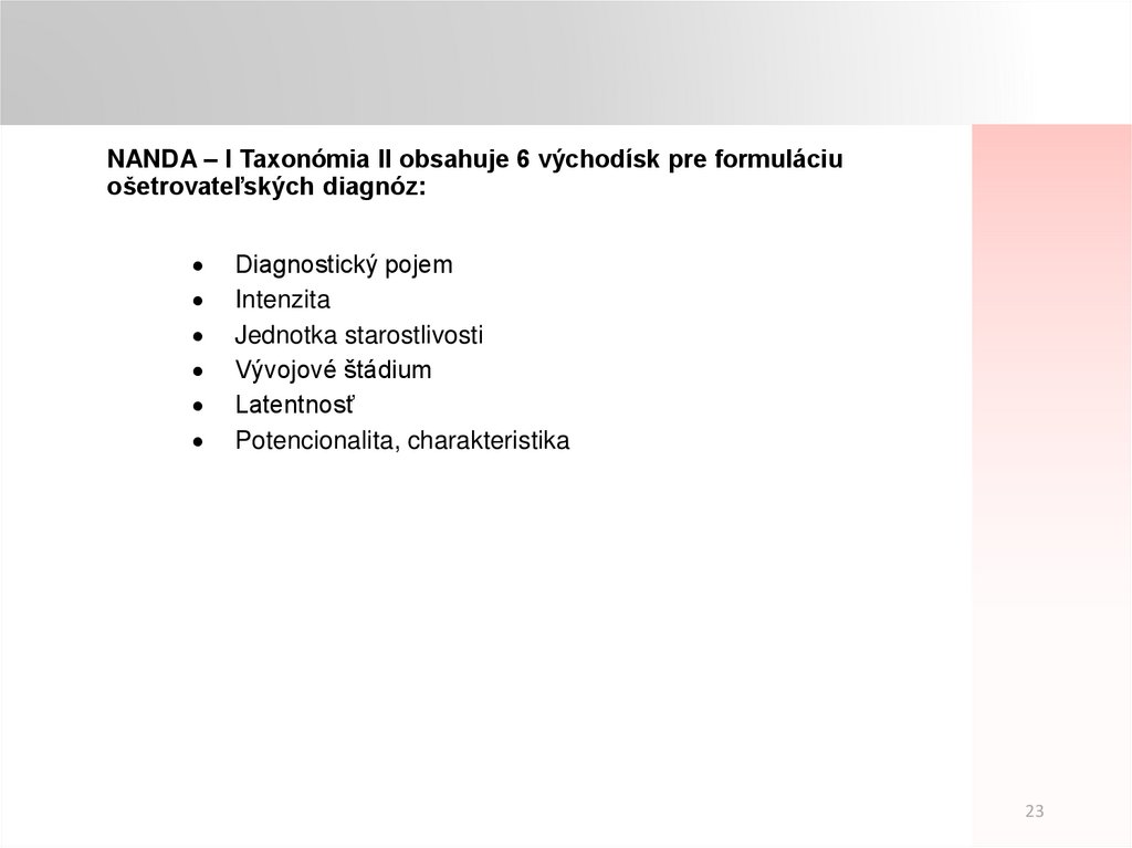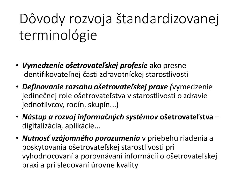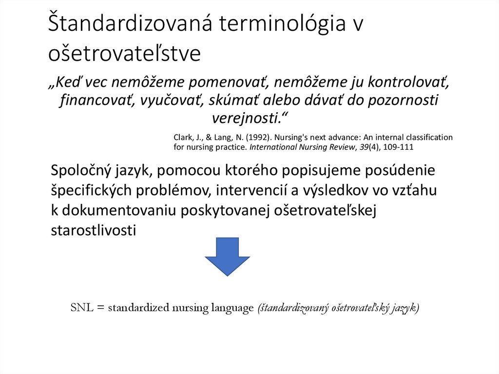 SNL = standardized nursing language (štandardizovaný ošetrovateľský jazyk)