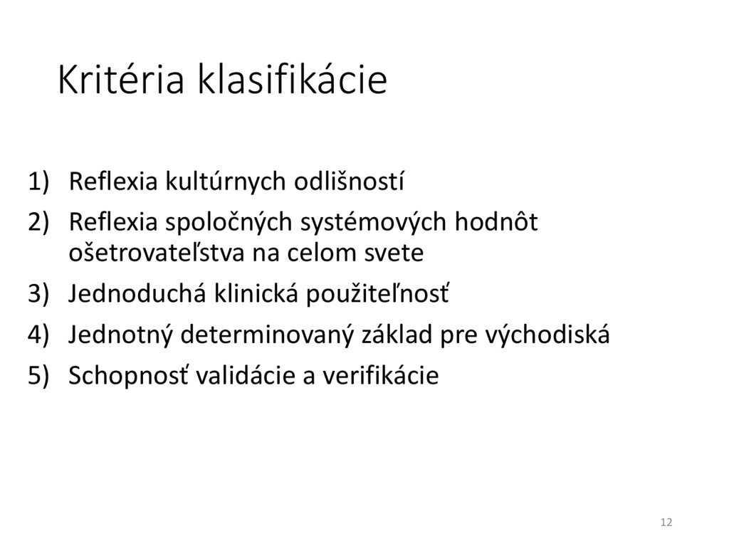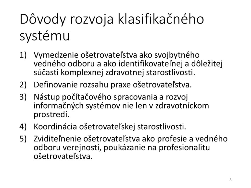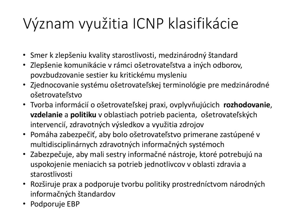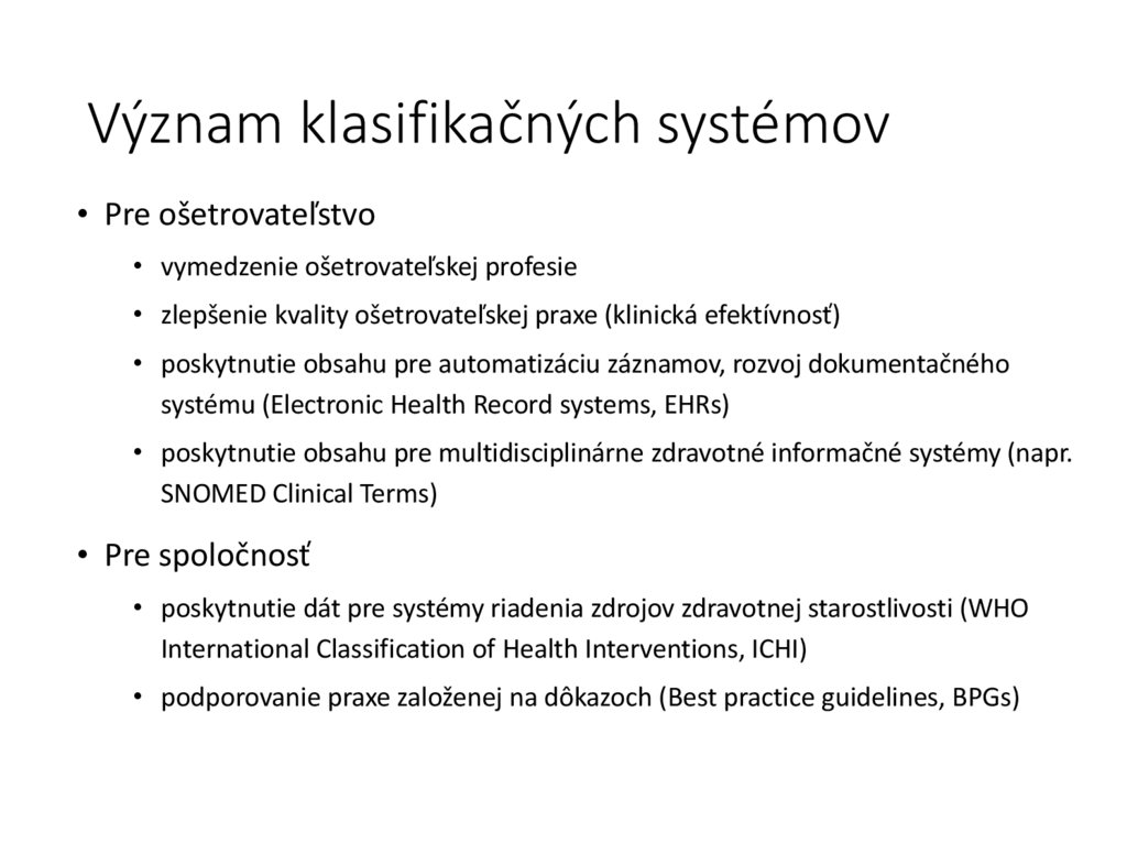 Význam klasifikačných systémov• Pre ošetrovateľstvo