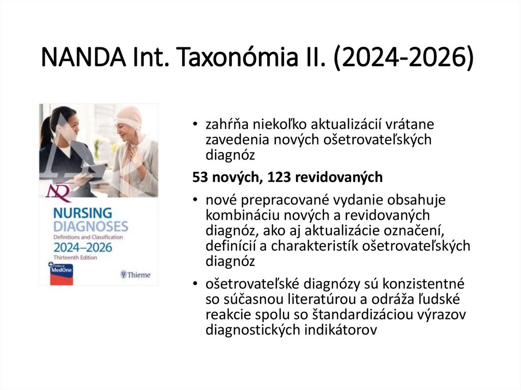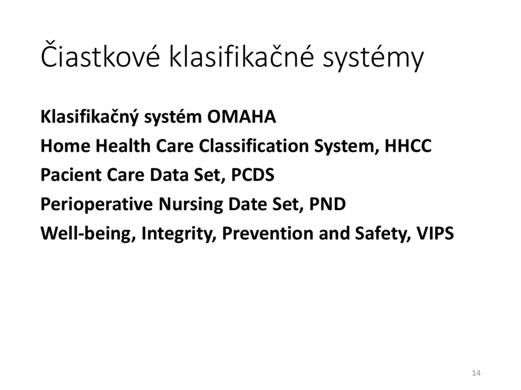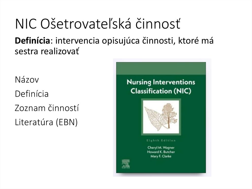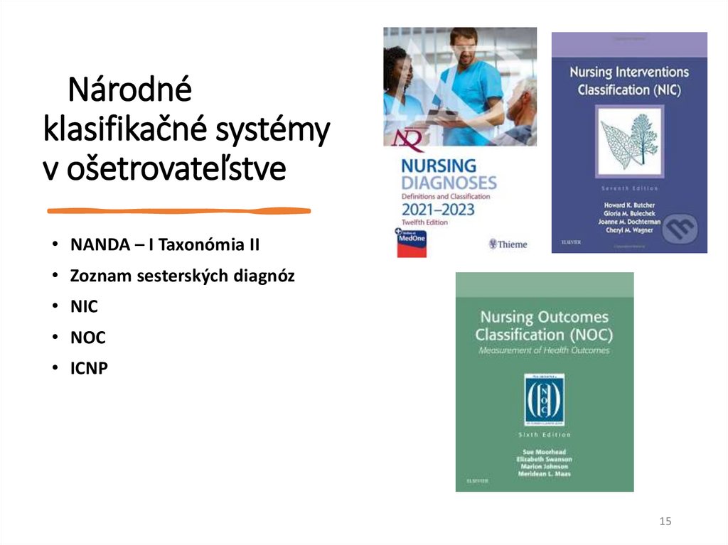 • VÖRÖSOVÁ, G., SOLGAJOVÁ, A., SLEZÁKOVÁ, Z. Klasifikačné systémy v ošetrovateľstve. Nitra: