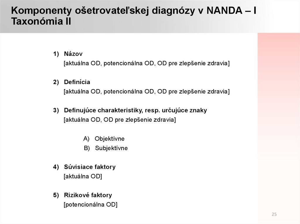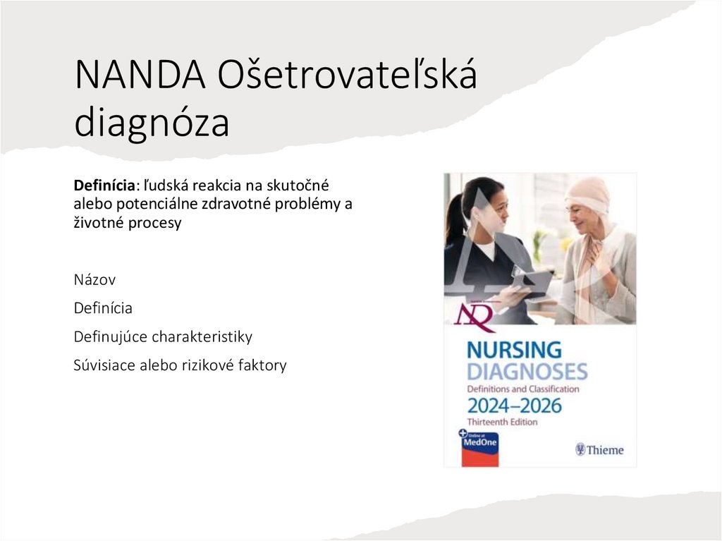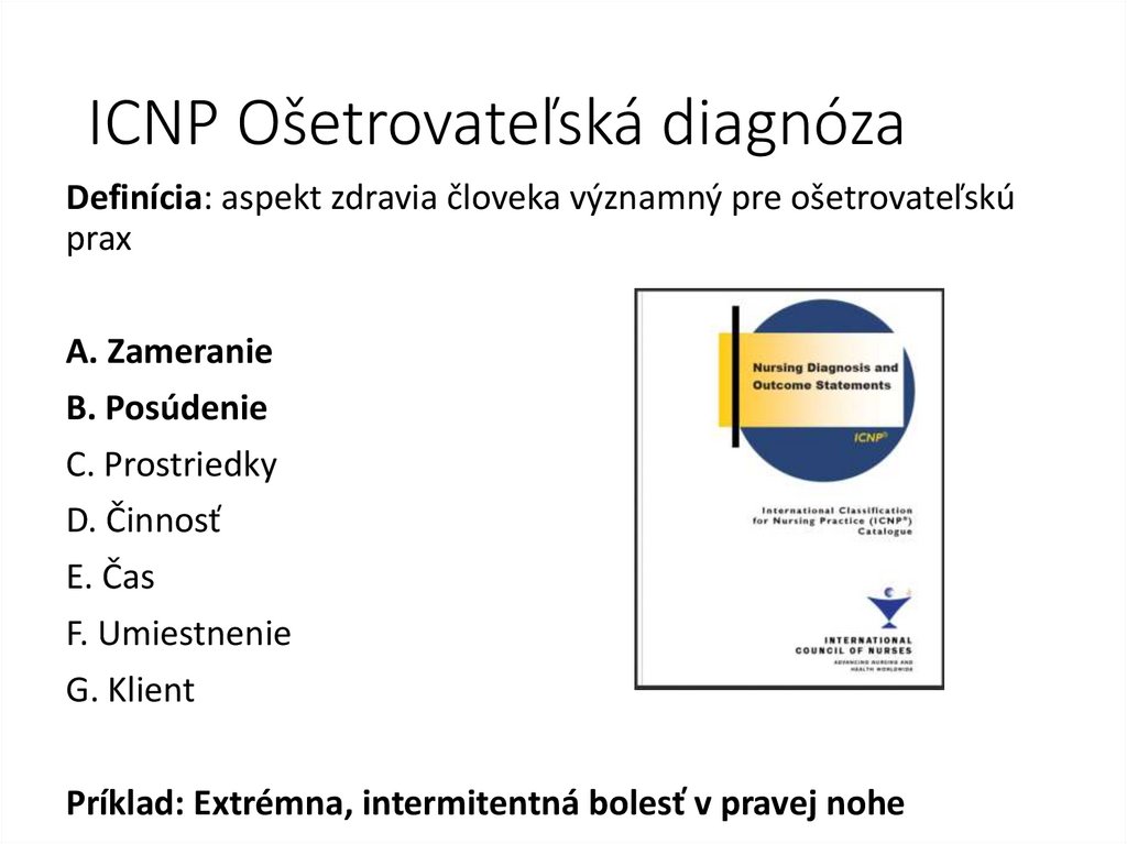 ICNP Ošetrovateľská diagnózaDefinícia: aspekt zdravia človeka významný pre ošetrovateľskú