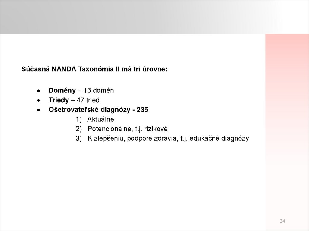 Použitá literatúra• VÖRÖSOVÁ, G. et al. Klasifikačné systémy a štandardizácia terminológie v ošetrovateľstve.