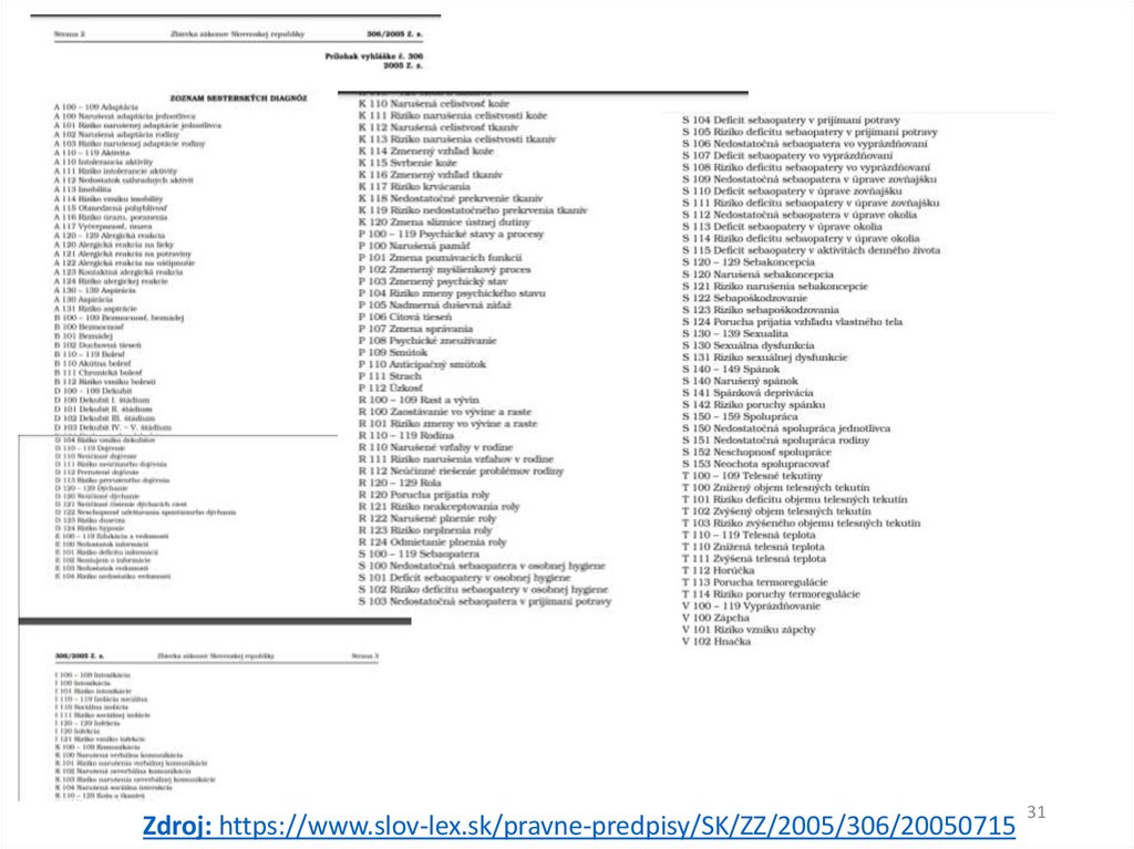 sesterských diagnóz č. 306/2005 Z.z., [online], Dostupné z: https://www.epi.sk/zz/2005-306