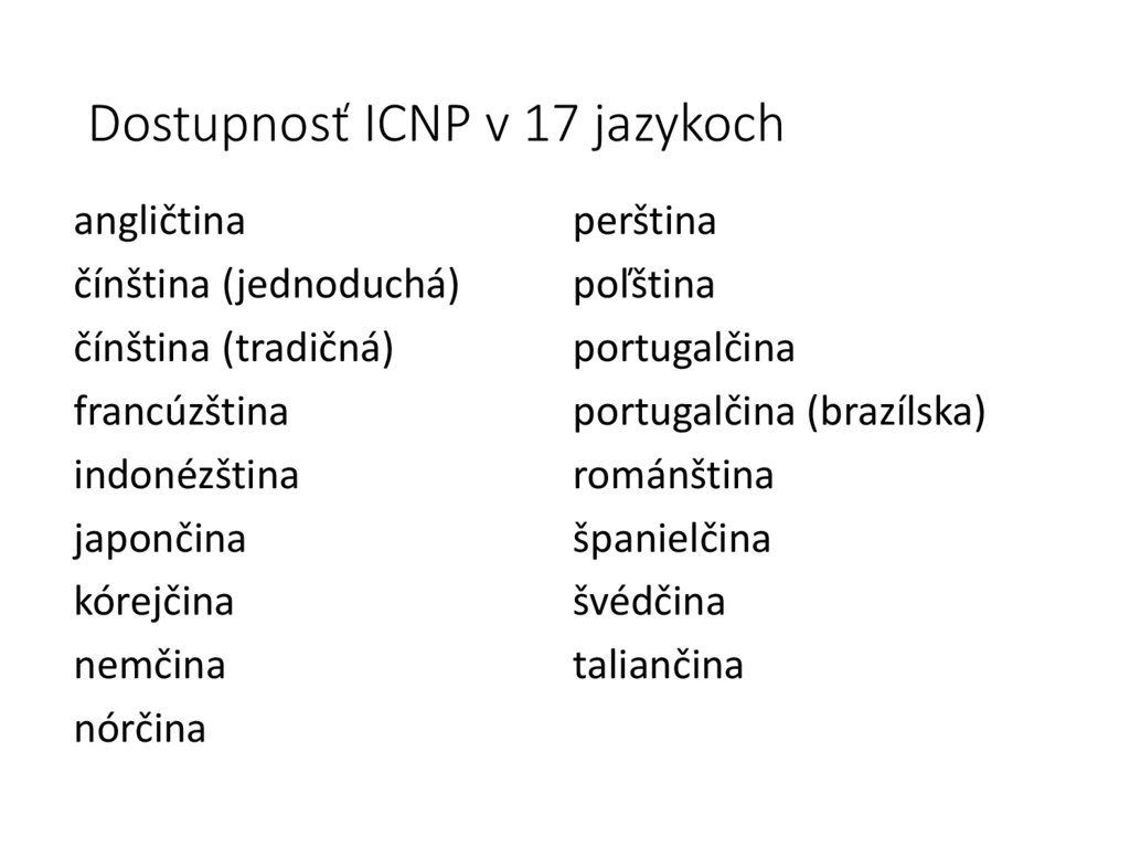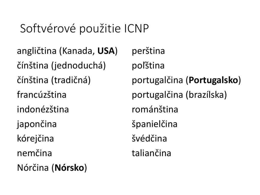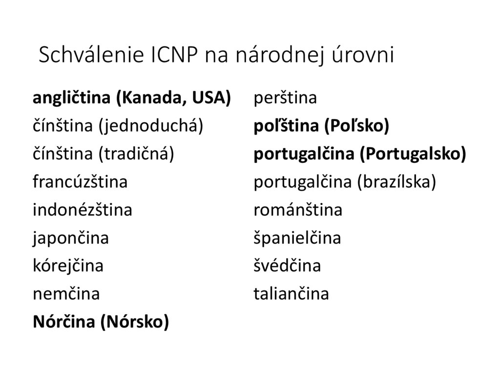 Schválenie ICNP na národnej úrovniangličtina (Kanada, USA)