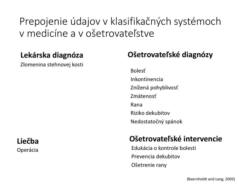 Prepojenie údajov v klasifikačných systémochv medicíne a v ošetrovateľstve