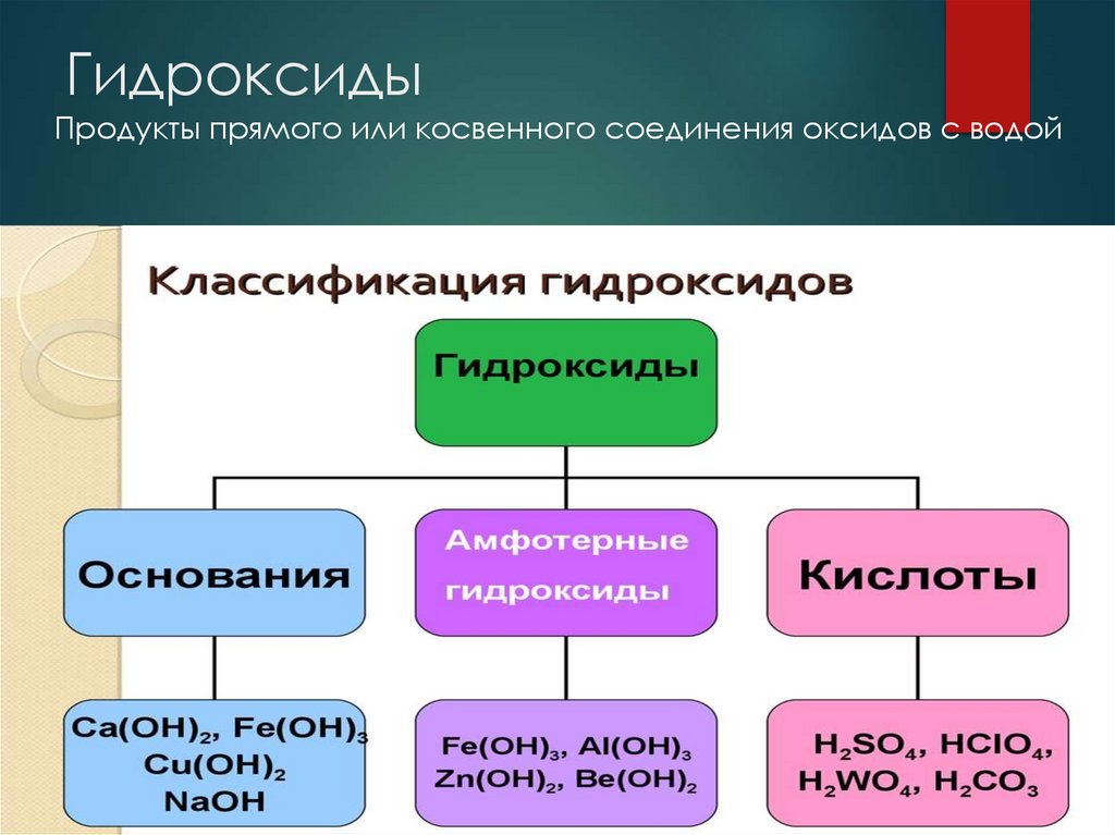 ГидроксидыПродукты прямого или косвенного соединения оксидов с водой