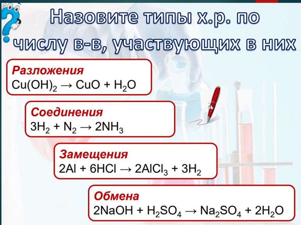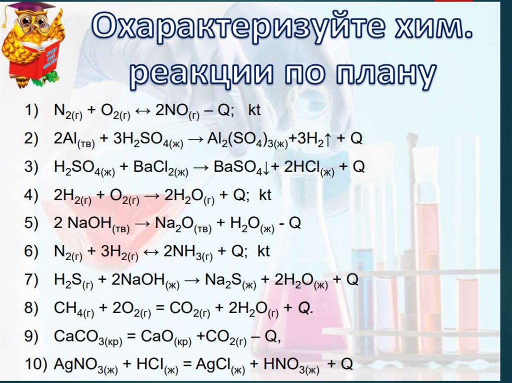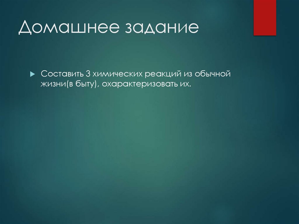 Домашнее заданиеСоставить 3 химических реакций из обычной