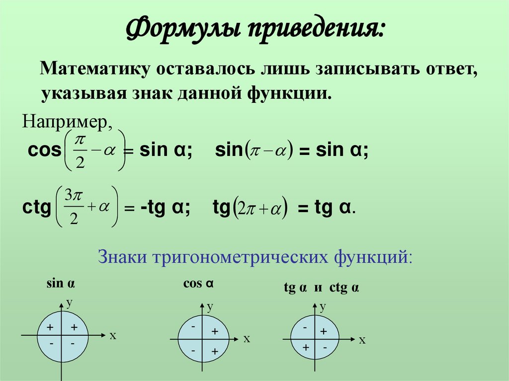 Математику оставалось лишь записывать ответ,указывая знак данной функции.