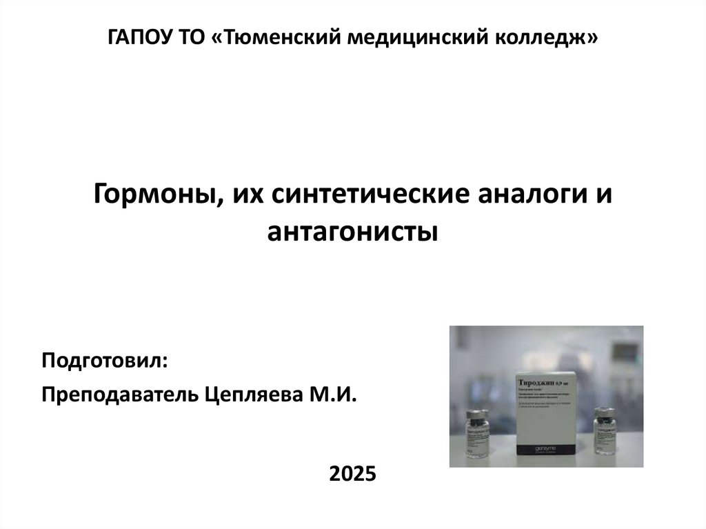ГАПОУ ТО «Тюменский медицинский колледж»Гормоны, их синтетические аналоги и