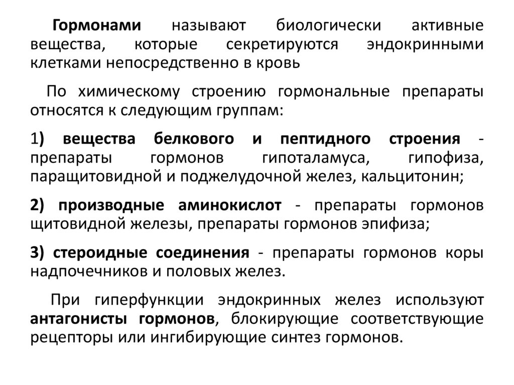 гормонов. Снижение содержания гормонов в крови стимулирует