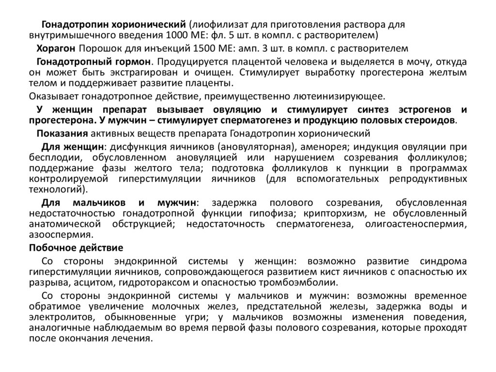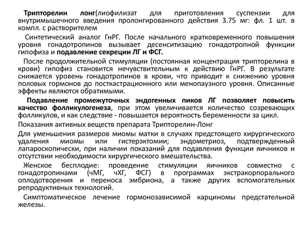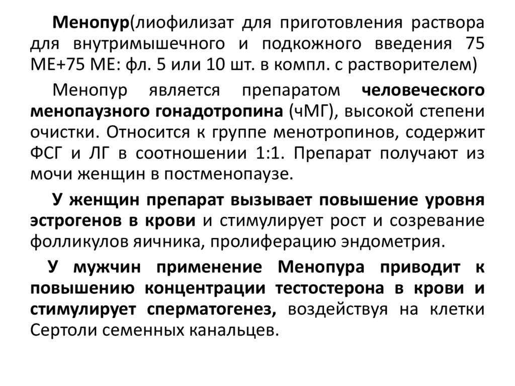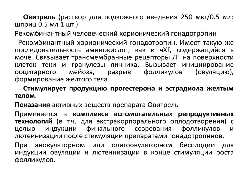 выведение плодного яйца. Вызывает торможение овуляции, изменение