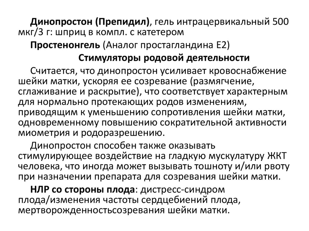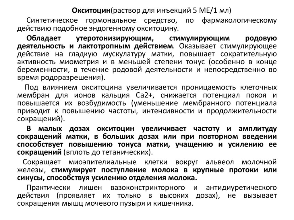 шейку матки. Повышает частоту и силу сокращений миометрия,