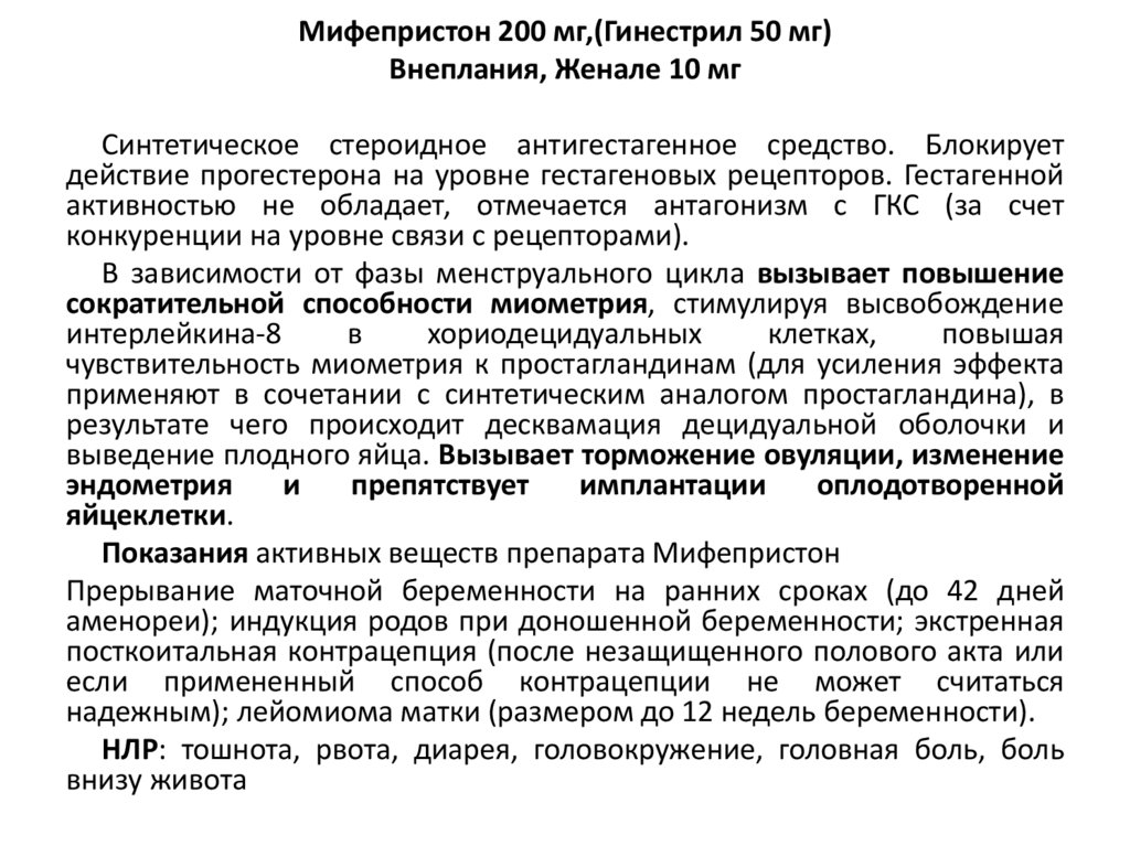 Мифепристон 200 мг,(Гинестрил 50 мг)Внеплания, Женале 10 мг