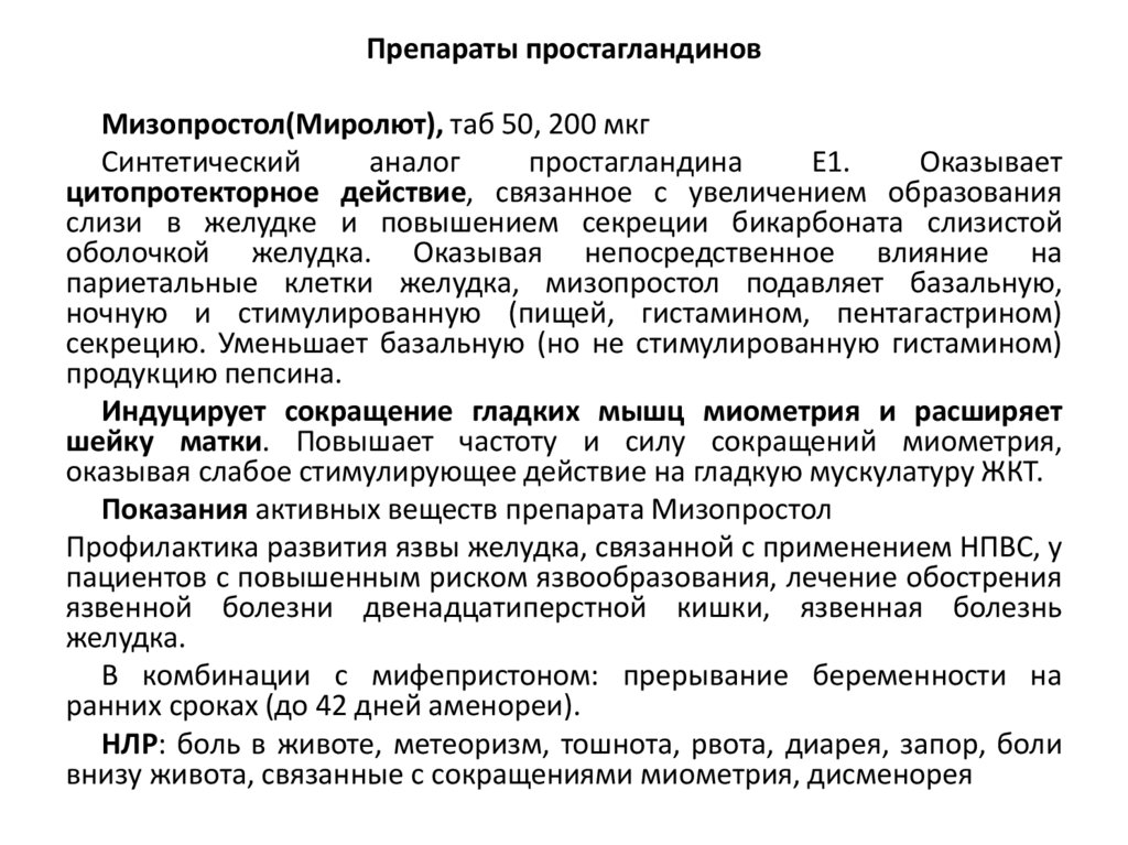 Препараты простагландиновМизопростол(Миролют), таб 50, 200 мкг