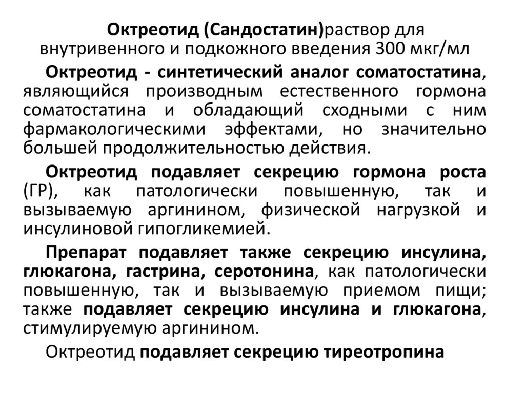 Октреотид (Сандостатин)раствор длявнутривенного и подкожного введения 300 мкг/мл