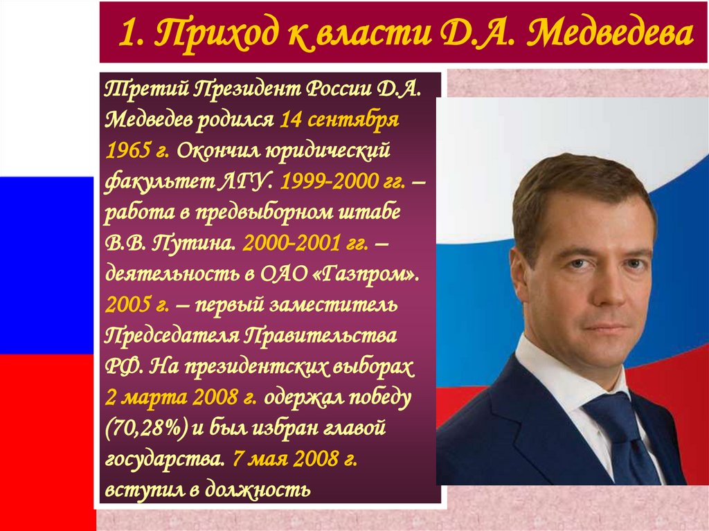 1. Приход к власти Д.А. МедведеваТретий Президент России Д.А.