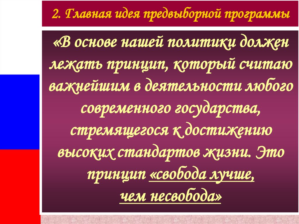 2. Главная идея предвыборной программы«В основе нашей политики должен