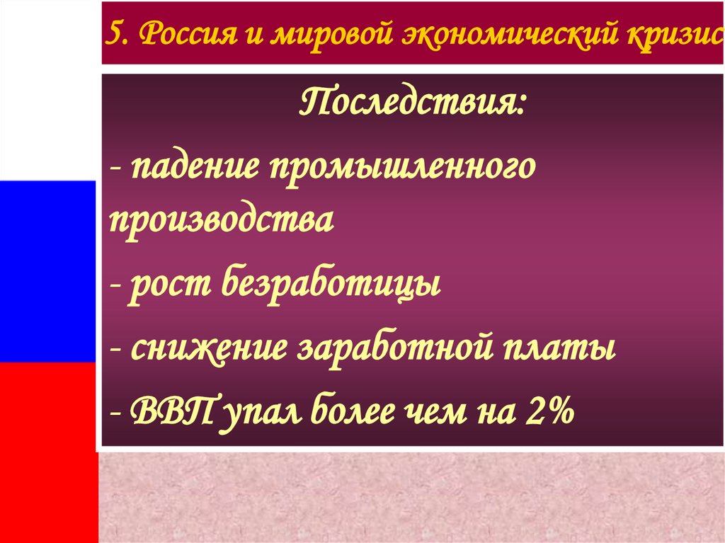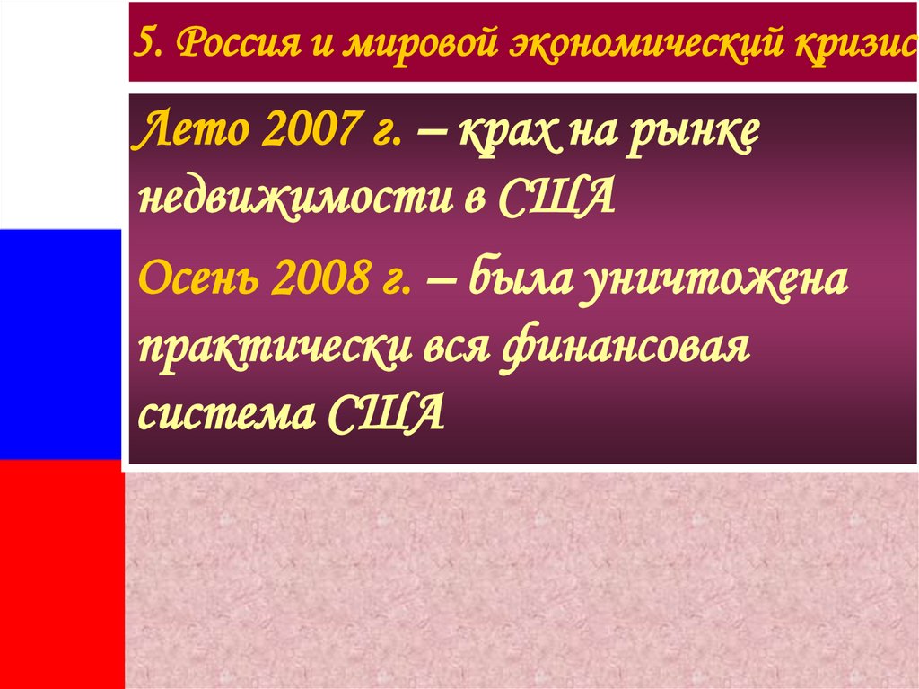 5. Россия и мировой экономический кризисЛето 2007 г. – крах на рынке