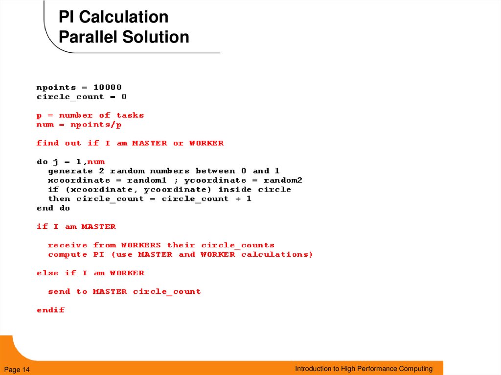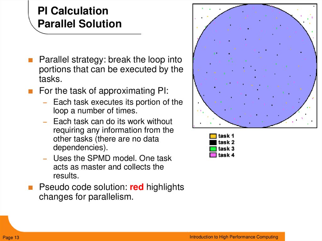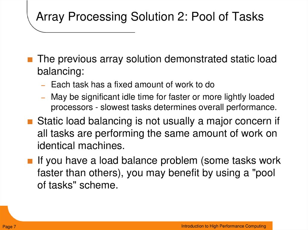 In the above pool of tasks example, each taskcalculated an individual array element as a job. The