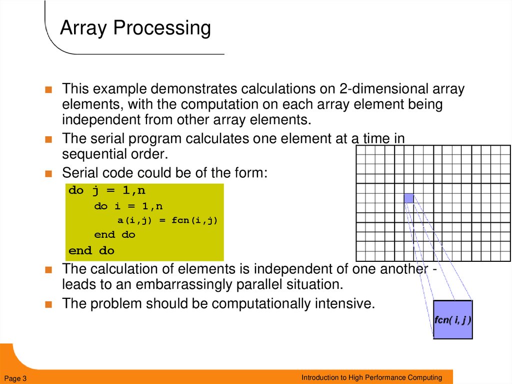 This example demonstrates calculations on 2-dimensional arrayelements, with the computation on each array element being