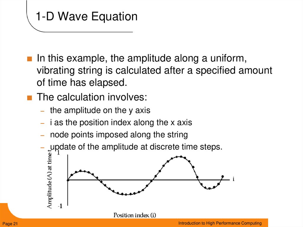 In this example, the amplitude along a uniform,vibrating string is calculated after a specified amount