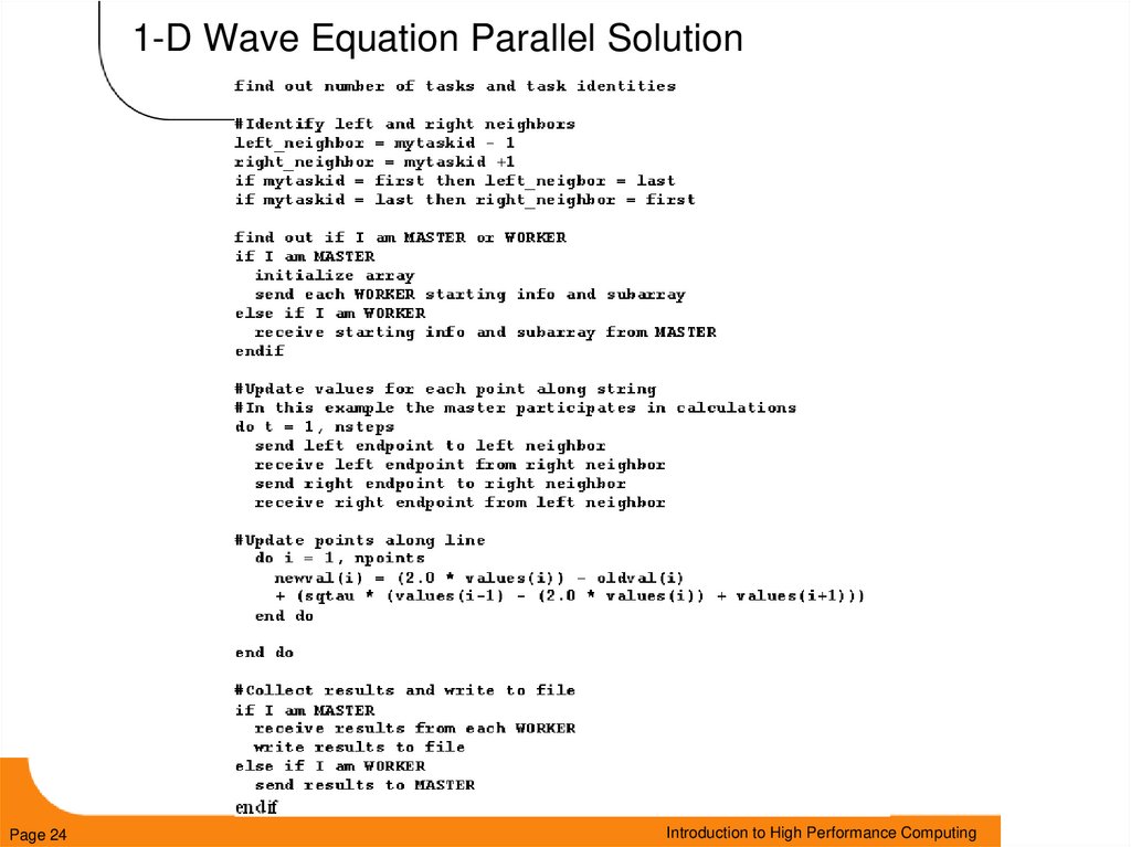 Implement as an SPMD modelThe entire amplitude array is partitioned and distributed as