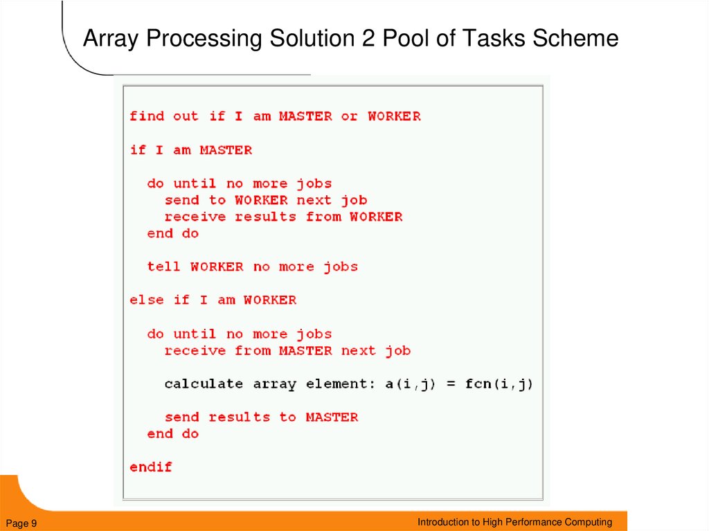 9. Array Processing Solution 2 Pool of Tasks Scheme