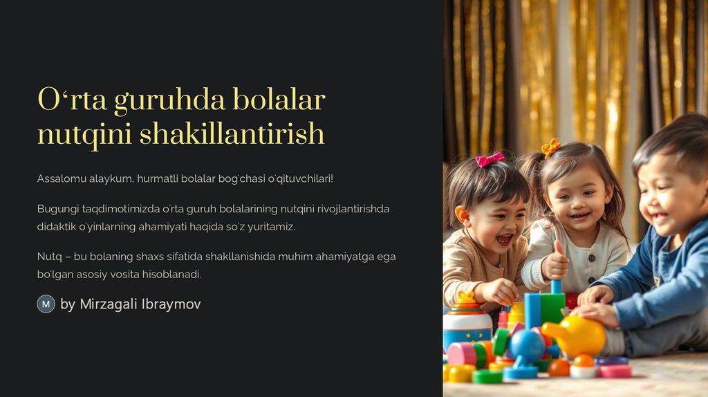 Bugungi taqdimotimizda oʻrta guruh bolalarining nutqini rivojlantirishda
