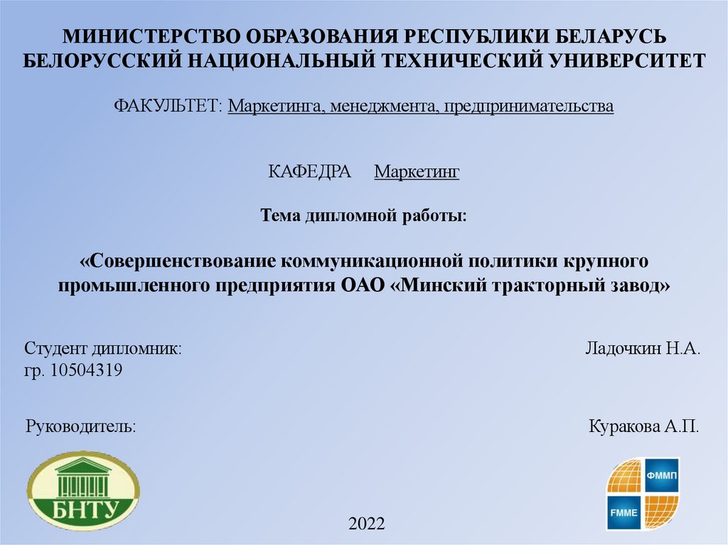 Совершенствование коммуникационной политики крупного промышленного предприятия ОАО «Минский тракторный завод»