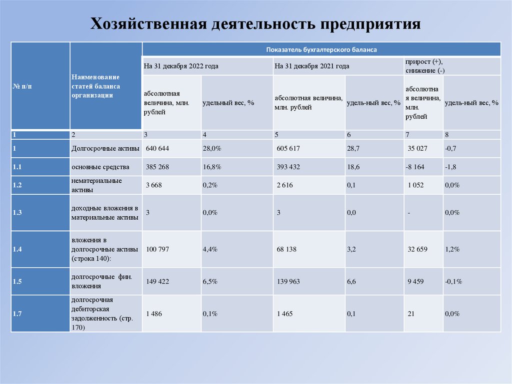 Хозяйственная деятельность предприятияПоказатель бухгалтерского баланса