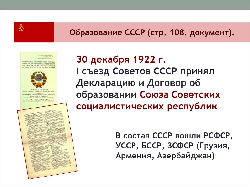 Образование СССР (стр. 108. документ).30 декабря 1922 г.