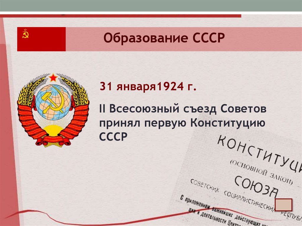Образование СССР31 января1924 г.